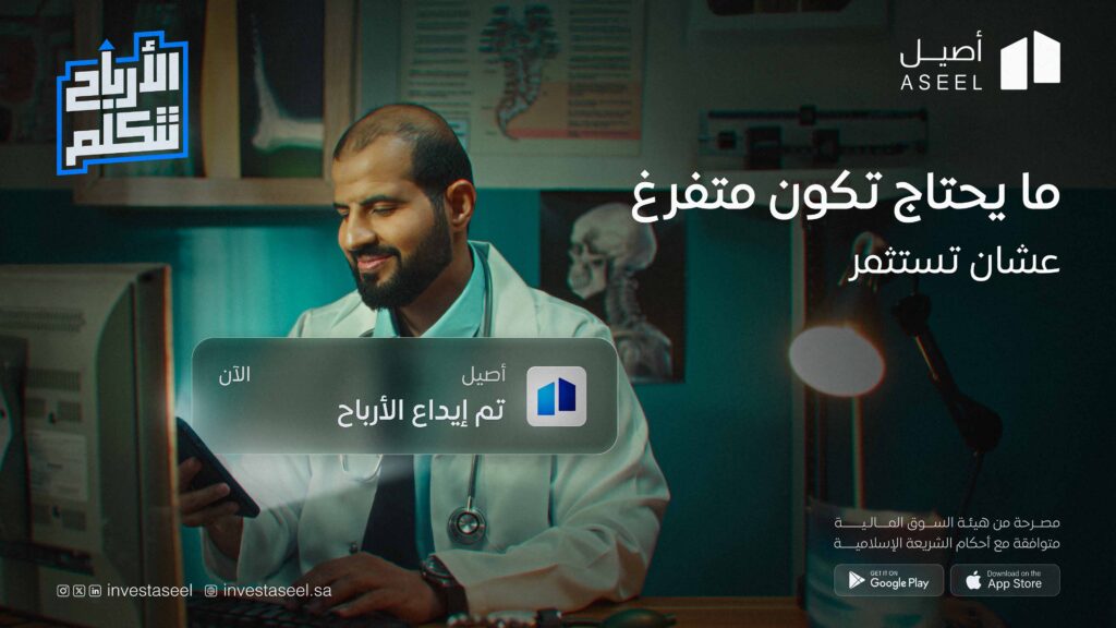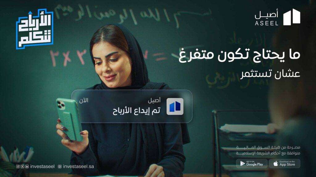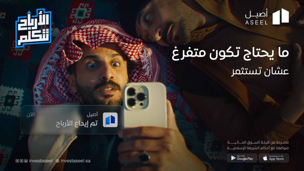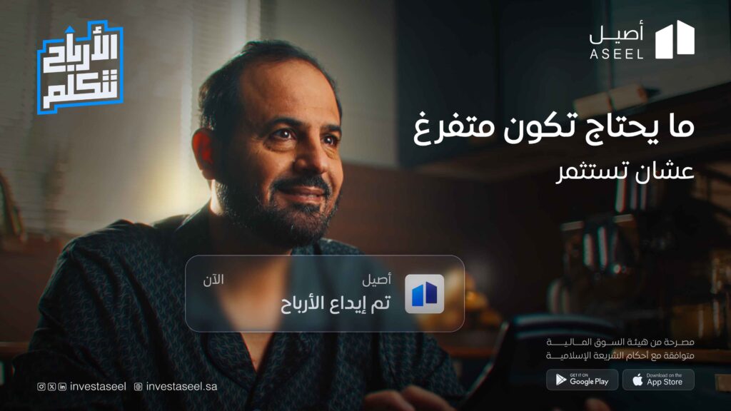 منصة أصيل للاستثمار العقاري، تتيح للأفراد الاستثمار في أكبر المشاريع العقارية، استعرضنا هذه القيمة عبر إعلان إبداعي يركز على لحظة وصول الأرباح لفئات مختلفة من المجتمع.